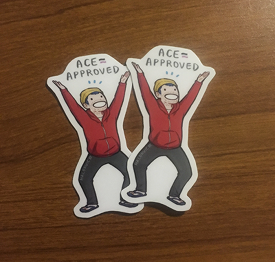 Two laminated die-cut vinyl stickers Roughly 6.6cm x 3.6cm