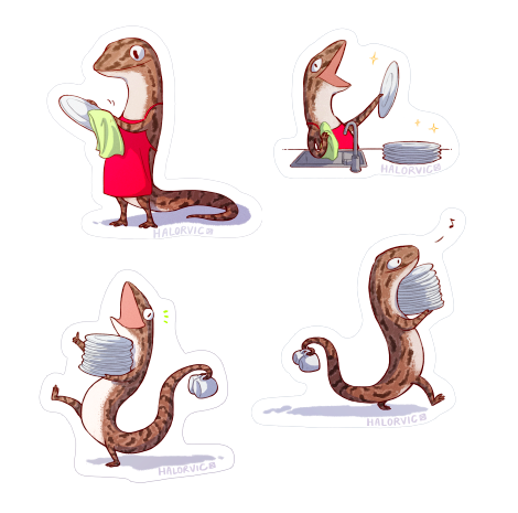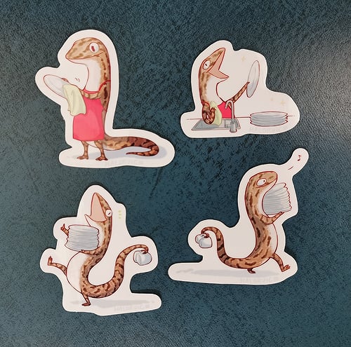 Set of 4 laminated vinyl die-cut stickers (varying sizes but no larger than 6cm in width/height).